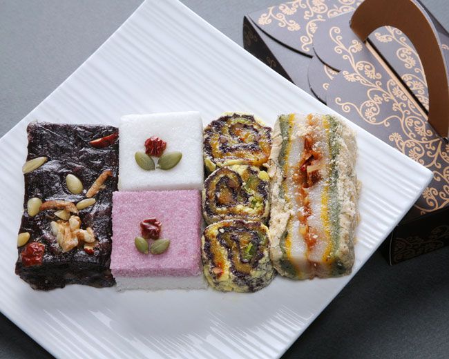 흑미호박말이,유자두텁편,케익설기,흑미찰떡으로 구성이 됩니다..