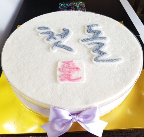 첫돌백설기 캘리글씨 케익